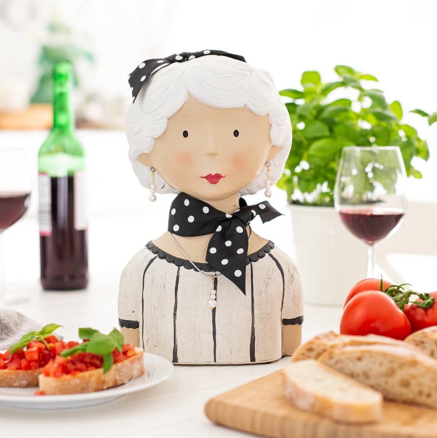 Questo bellisimo busto donna con foulard e collana, dai colori bianco e nero, è interamente dipinto a mano. Rappresenta un articolo di altissima qualità e pregio. Adatto per arredare qualsiasi ambiente della casa donando uno stile elegante e raffinato. Adatto solo per uso interno.
