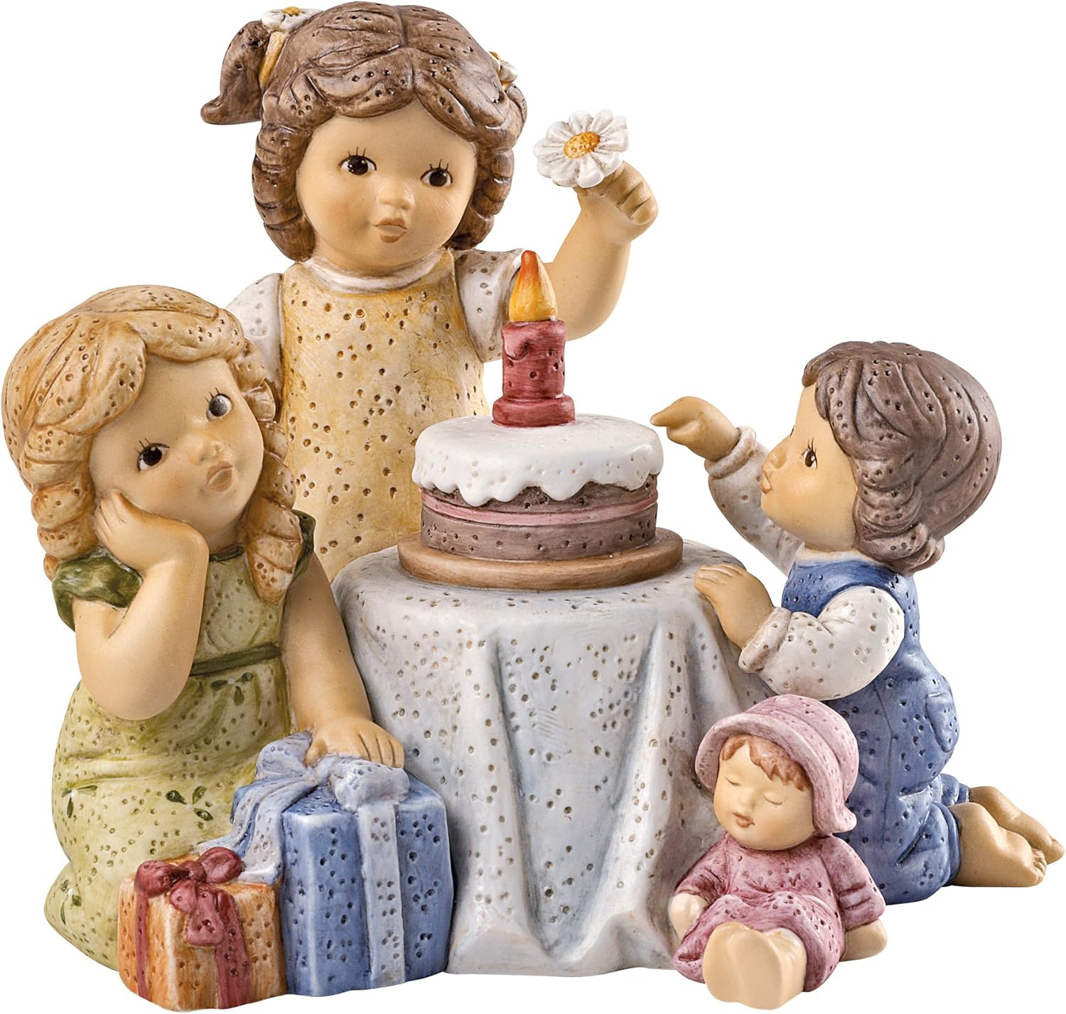 Una bellissima festa di compleanno! Amici, tanti regali, una buonissima torta sono gli ingredienti perfetti per questa statuina in porcellana di Goebel. E soprattutto è anche un simpatico carillon.