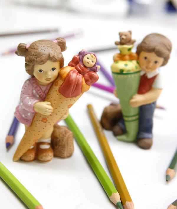 "Nina comincia la scuola", figura decorativa in porcellana Goebel di Nina e Marco di Julia E. Limpke.