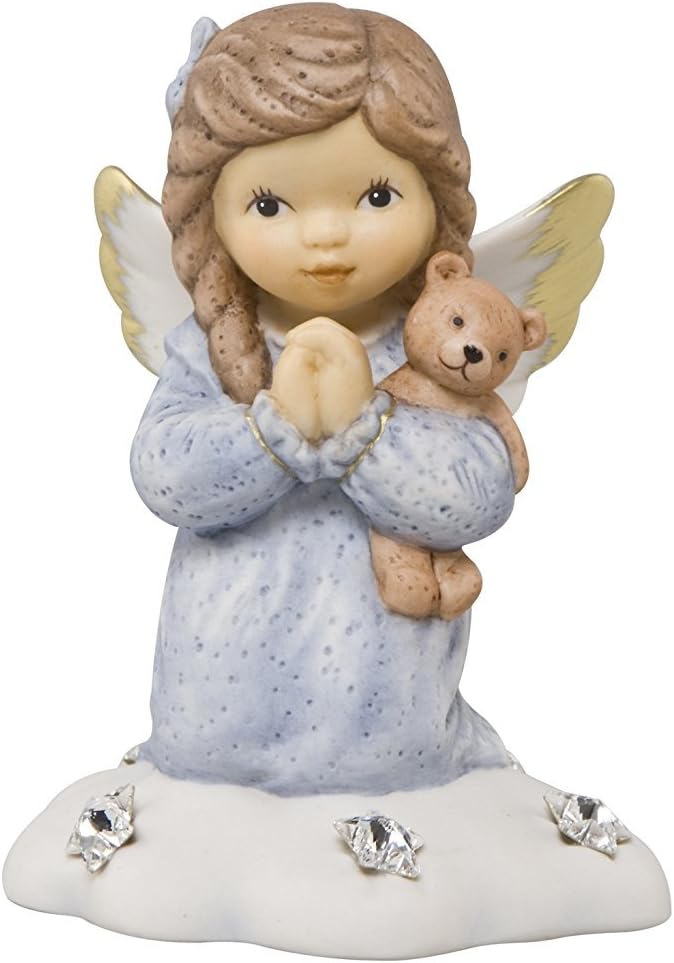 Un piccolo angioletto prega in ginocchio sulla sua nuvola celeste decorata con scintillanti stelle Swarovski®.