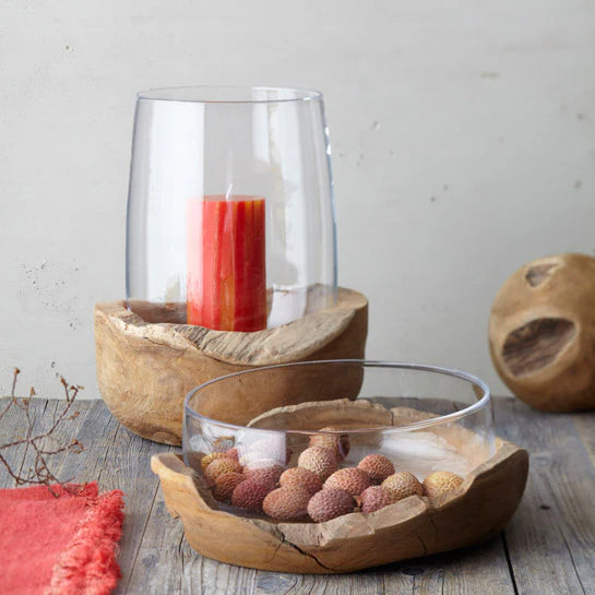 Il meraviglioso portacandele della serie Terra di Leonardo crea un'atmosfera fantastica e un tocco di temperamento nella vostra casa. Realizzata a mano in vetro e legno della massima qualità, la combinazione di questi due materiali conferisce alla casa leggerezza e freschezza, dando uno stile rustico all'ambiente. Lasciatevi ispirare da un design fresco e armonioso. A questo portacandele è abbinata una base in legno teak.