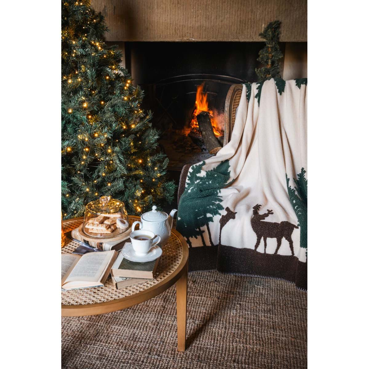 Rendi magica la tua casa durante le feste con il Plaid Sherpa della collezione "Silenzio Alpino" di Blanc Mariclò, dal raffinato decoro natalizio nei toni del verde. Realizzato in morbido tessuto di alta qualità, questo plaid misura 140x170 cm ed è impreziosito da un romantico motivo di renne e abeti, perfetto per creare un’atmosfera calda e accogliente nel periodo invernale.