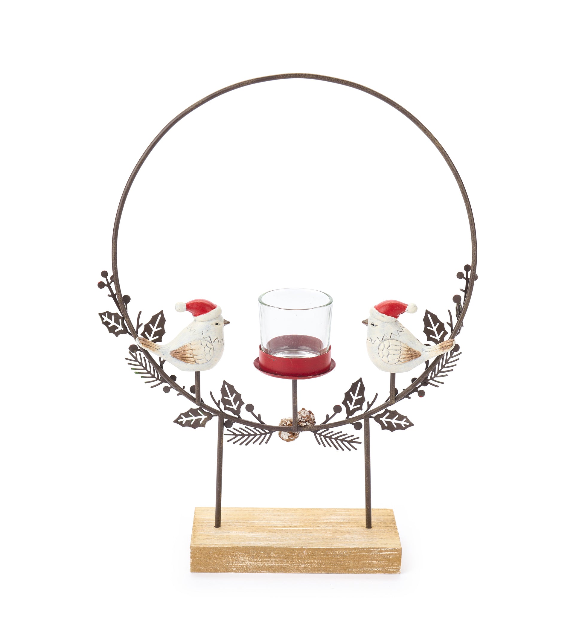 Supporto in metallo tondo per porta t-light con uccellini cappello natale di Nuvole di Stoffa