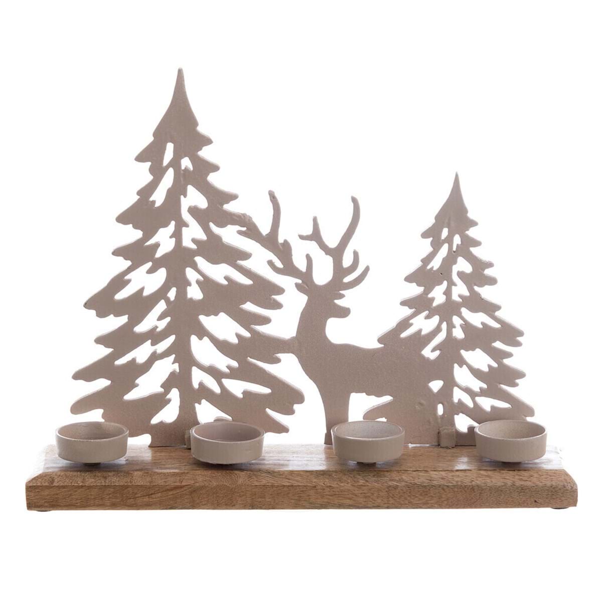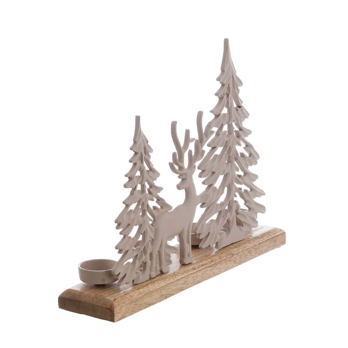 Immergiti nell'atmosfera incantata del Natale con il porta candela Canto D'Inverno in legno di mango e metallo di Blanc Mariclò. Realizzato con legno di mango di alta qualità, questo porta candele è caratterizzato da disegni raffinati di renne, aggiungendo un tocco rustico e festoso alla tua tavola.