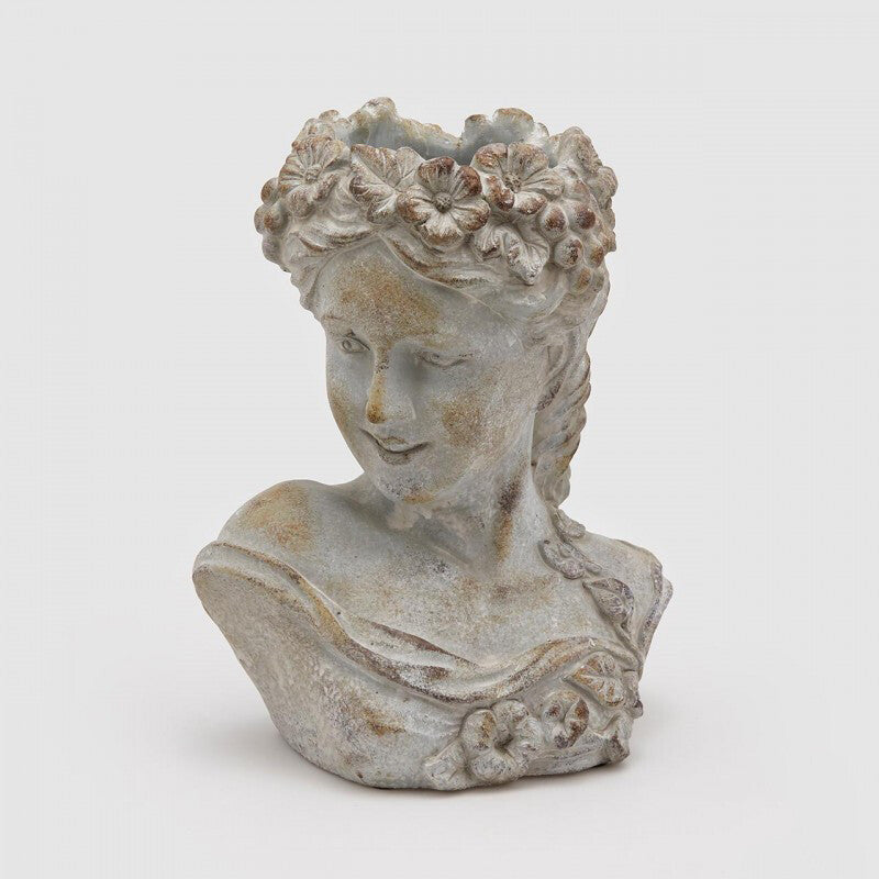 Questo vaso testa di donna è realizzato in cemento. E' adatto sia per un utilizzo interno che esterno. Ideale da utilizzare come vaso portafiori. L'aspetto neutrale del cemento lo rende abbinabile sia in un contesto classico che moderno.