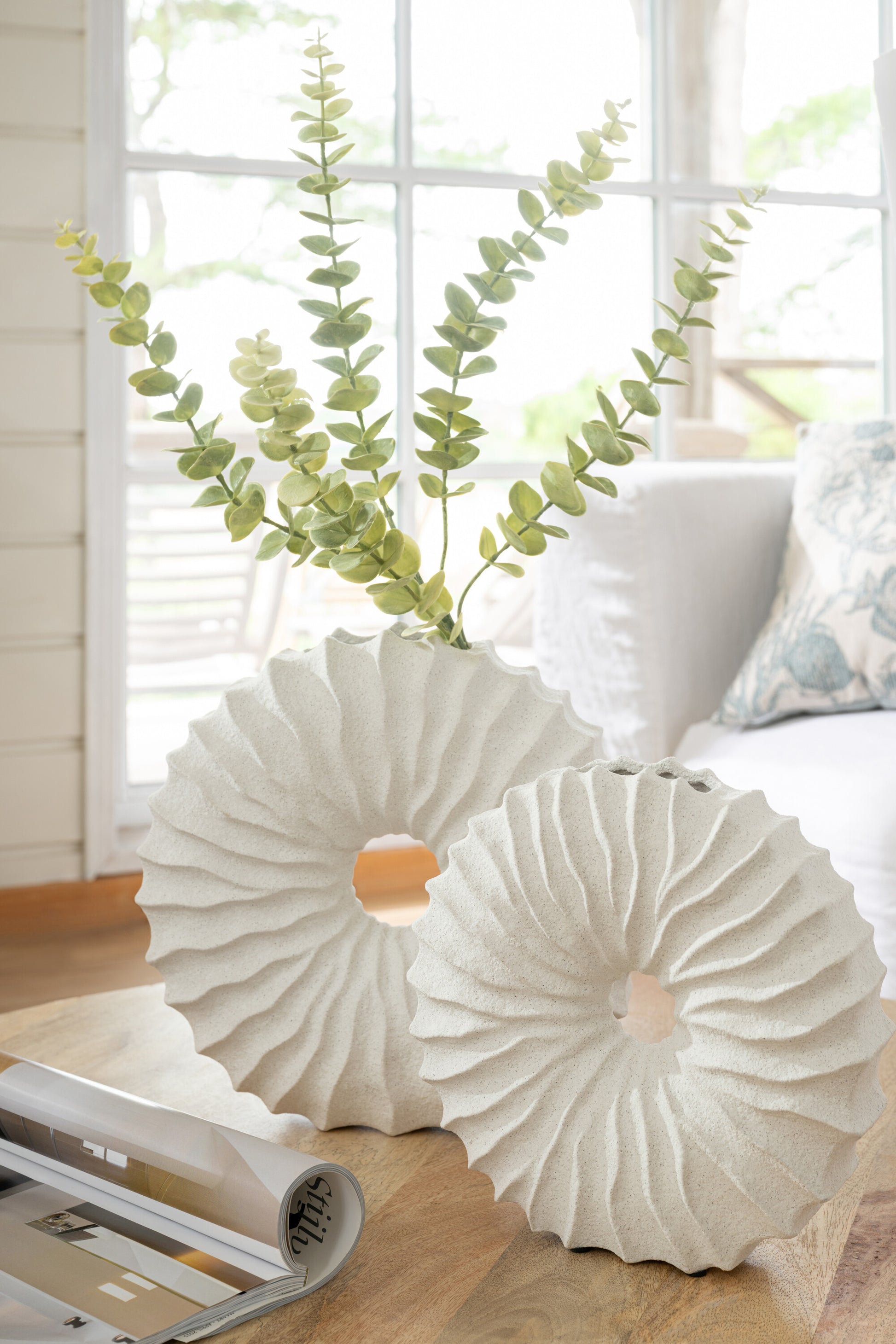 Vaso tondo finitura sabbiata gres bianco d. 25,5 - J LINE by JOLIPA